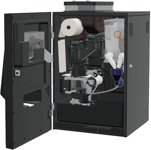 Each bean hopper has its own burr grinder and the coffee is crafted with Cafection Platinum brew group, renowned and beloved for its high quality taste signature. This combination renders the Symbol capable of a high output of up to 60 drinks per hour.